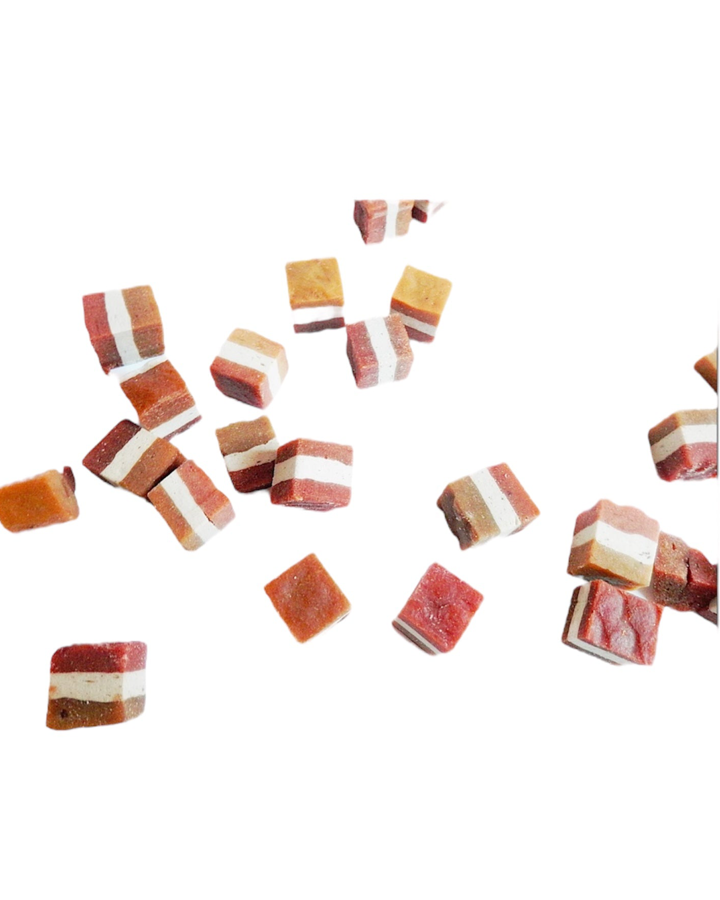 Our natural Chicken & Fish & Beef Mix Meaty Cubes Training Jerky treats are premium, chewy dog treats crafted for the ultimate training reward. This blend combines high-quality chicken, fish, and beef into meaty cubes, providing a rich mix of flavours and proteins as well as being hypoallergenic,