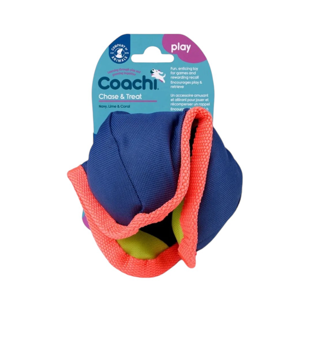 The Coachi Chase & Treat is an engaging puzzle that you can fill with treats to spark your dog's interest and encourage play. Ideal for dogs that aren't typically toy-oriented, it motivates them to chase and interact. You can throw it without worrying about treats spilling out with the secure velcro fastening making it perfect for distance and agility training as well as challenging for your pooch to open and retrieve the treats!