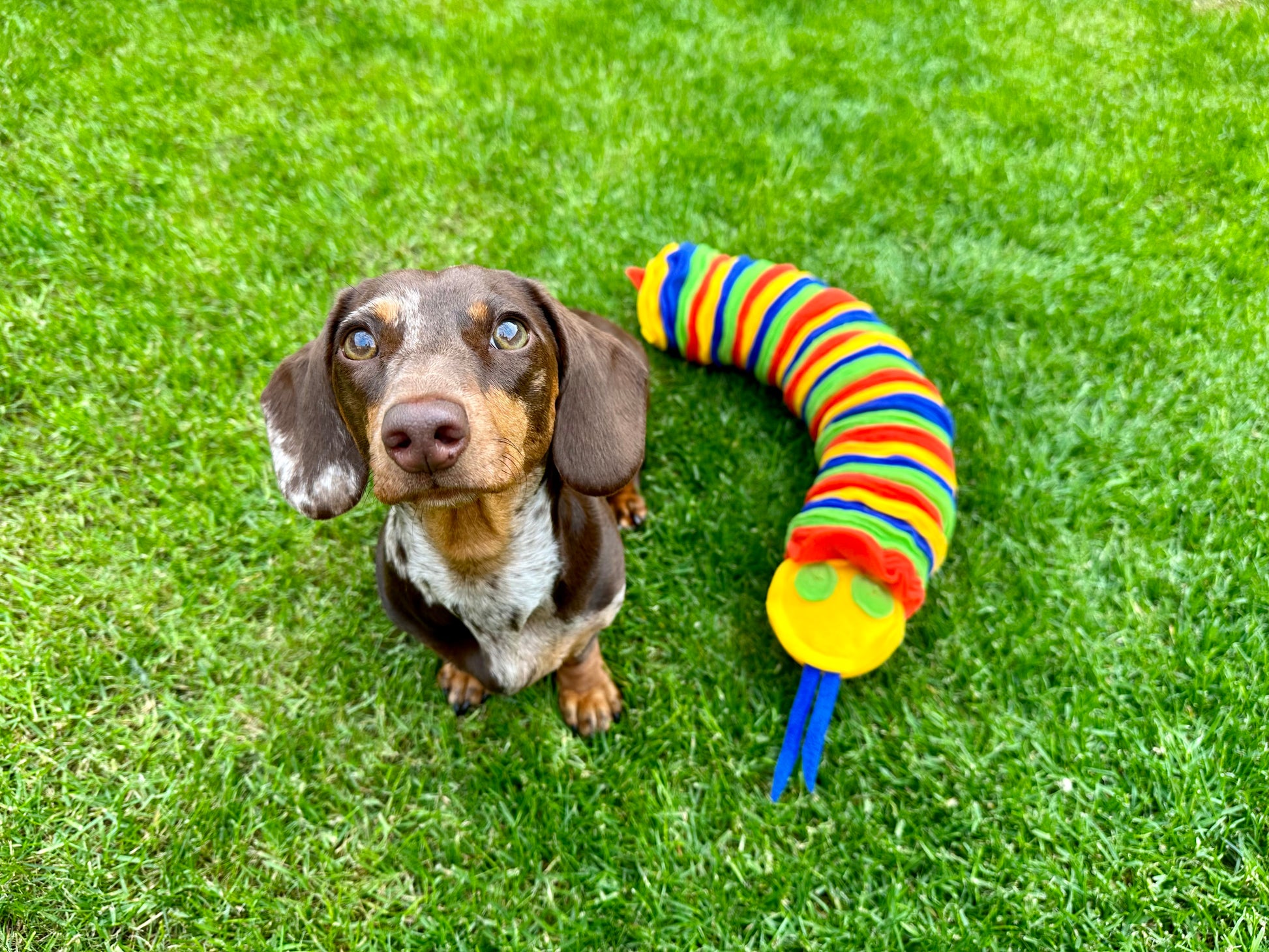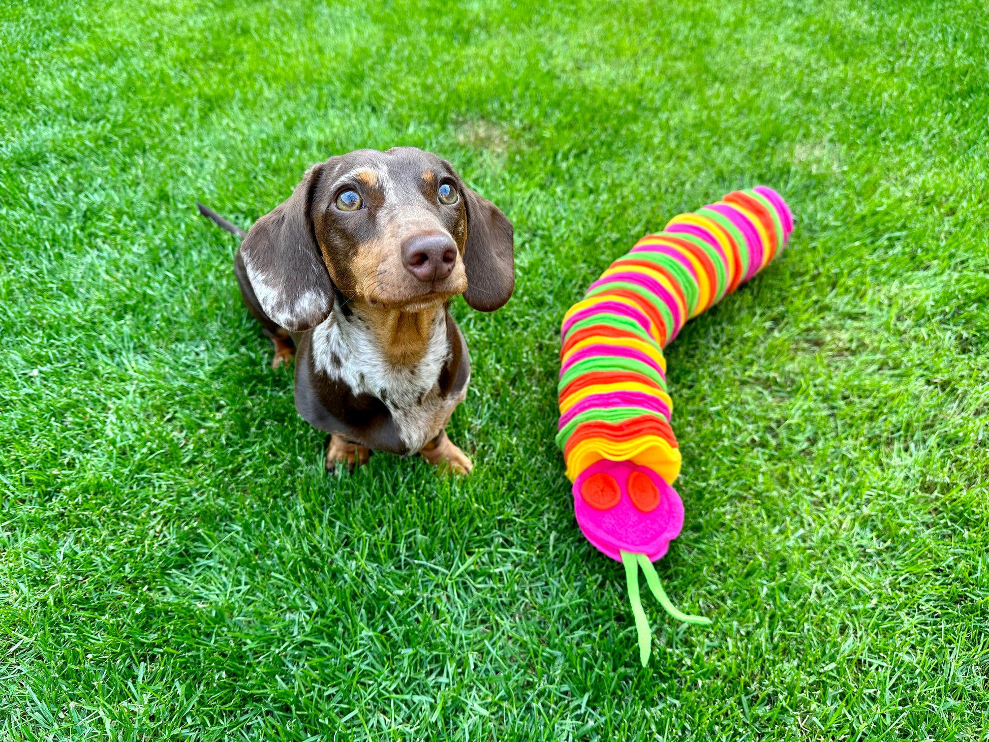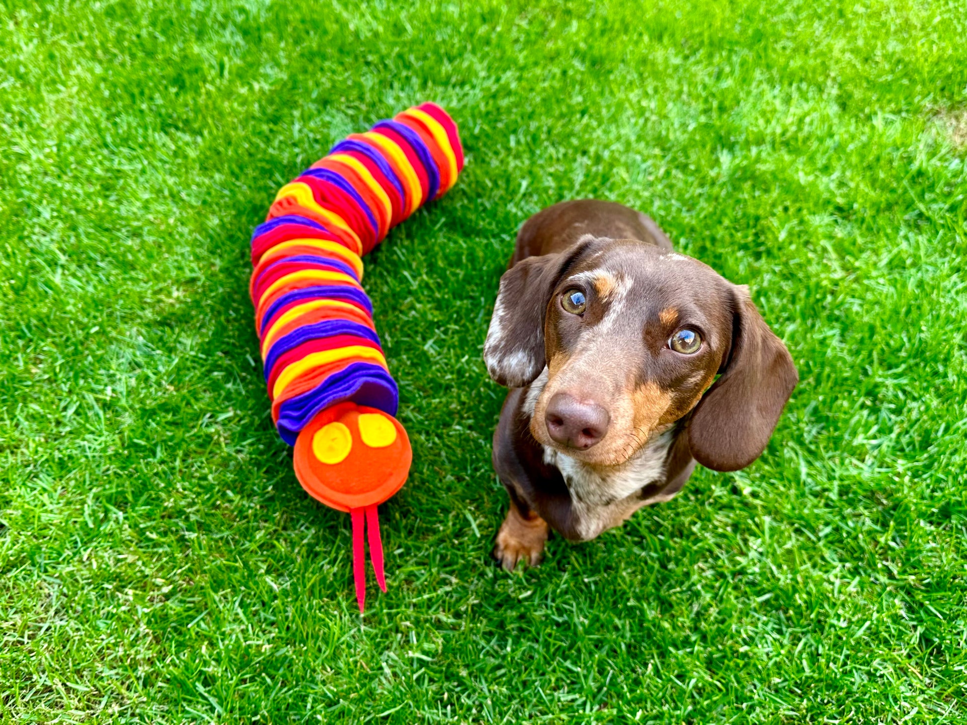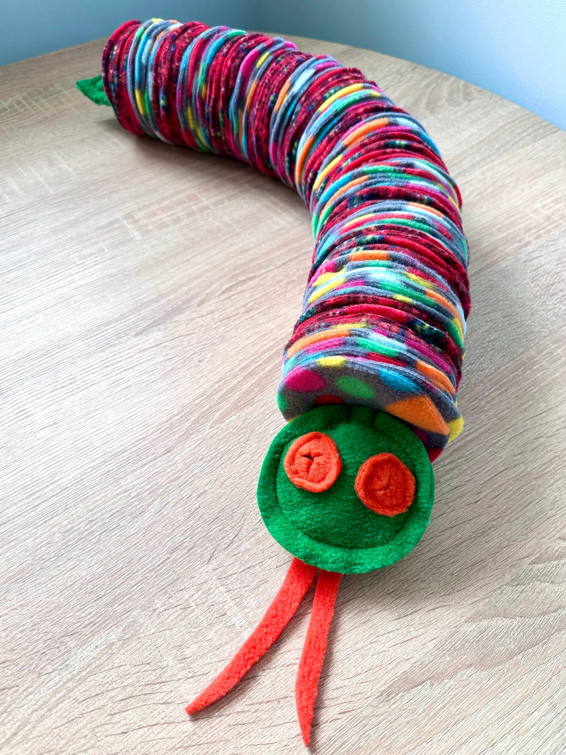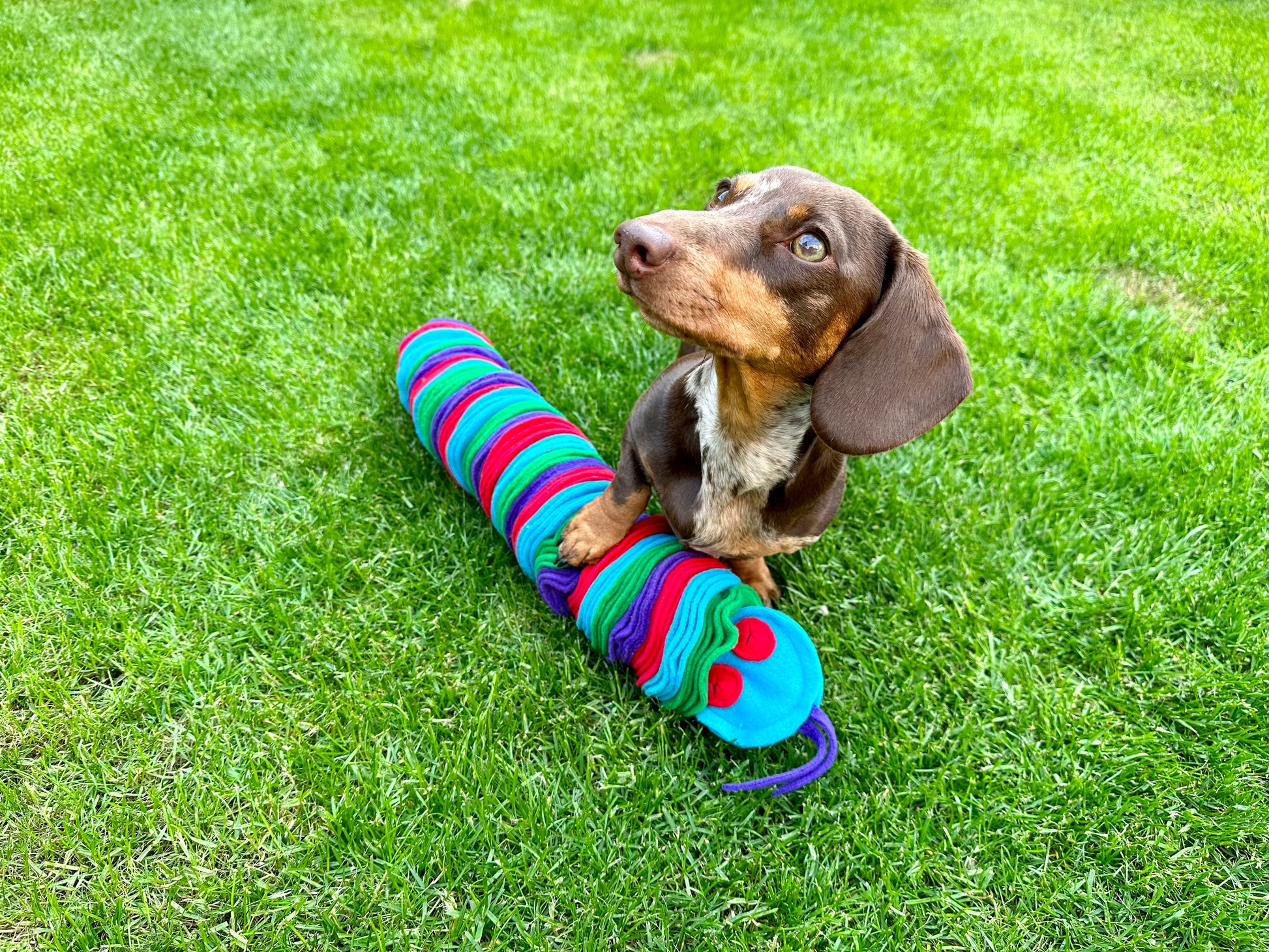 Measuring 60cm from the tail to the tongue, this Snuffle Snake is made with 3” super soft, high-quality fleece circles. It arrives wrapped with 100% recyclable materials ready to gift along with wash care instructions.