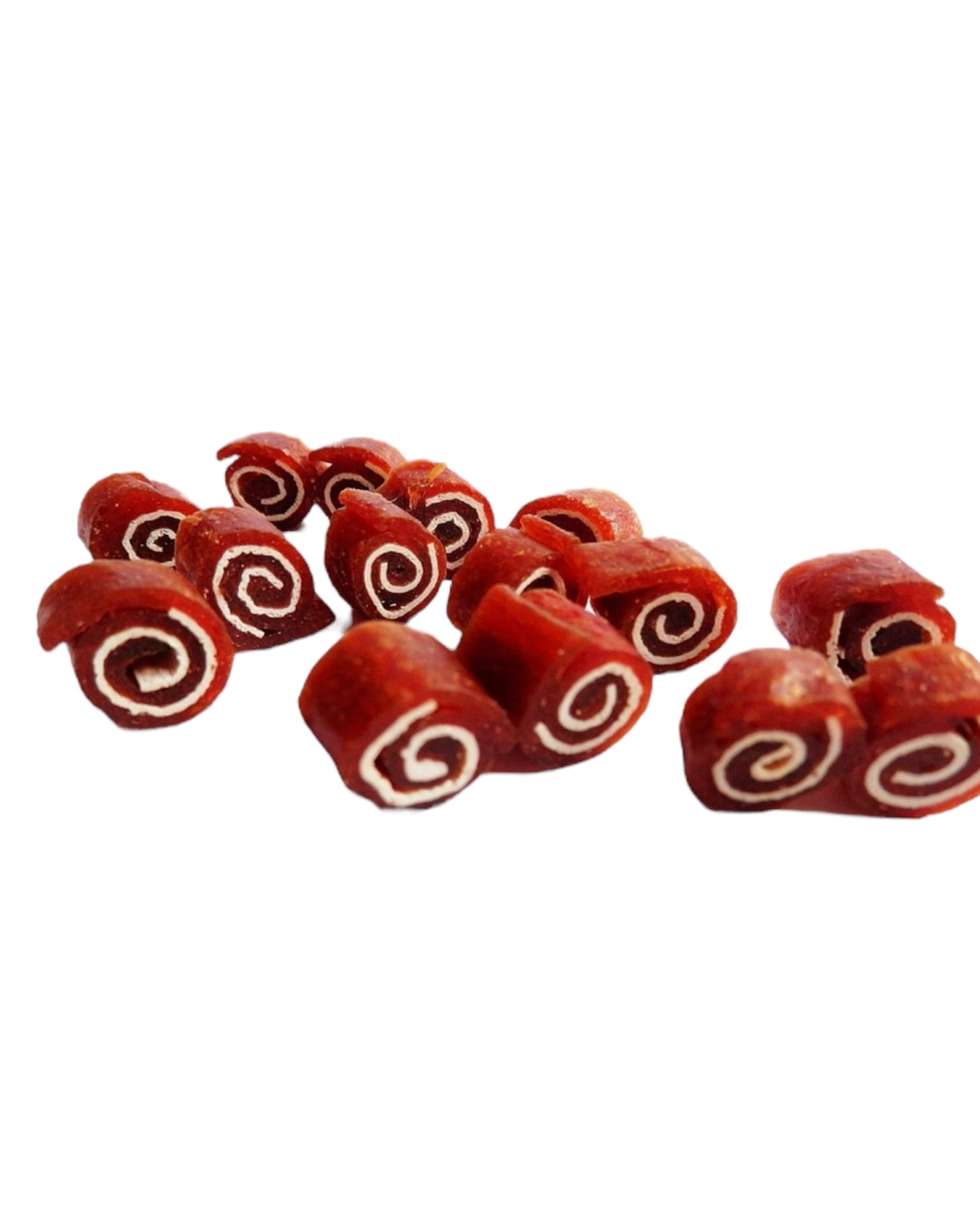 Introducing our natural Duck & Cod Fish Mini Rolls the perfect premium moist chewy dog treats designed for training and rewarding your furry friend! These tasty treats combine the rich flavor of duck with the nutritious benefits of cod, all rolled into convenient mini sizes. Ideal for dogs of all sizes, they offer a high-protein, hypoallergenic delicious snack that makes training a breeze.