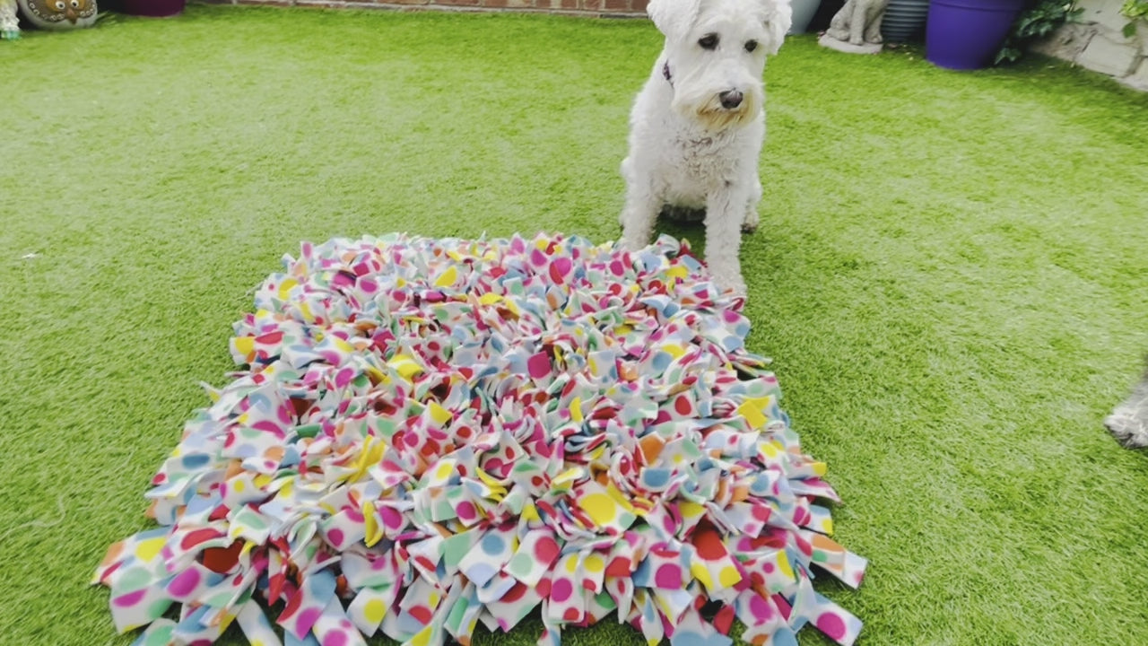 Made with a heavy, hardwearing non-slip rubber base and long, thick strands of top-quality polar fleece, this Snuffle Mat weighs 4.5kg when fully made. Its generous size prevents easy flipping during snuffling. When not in use, the mat conveniently folds in half for compact storage.