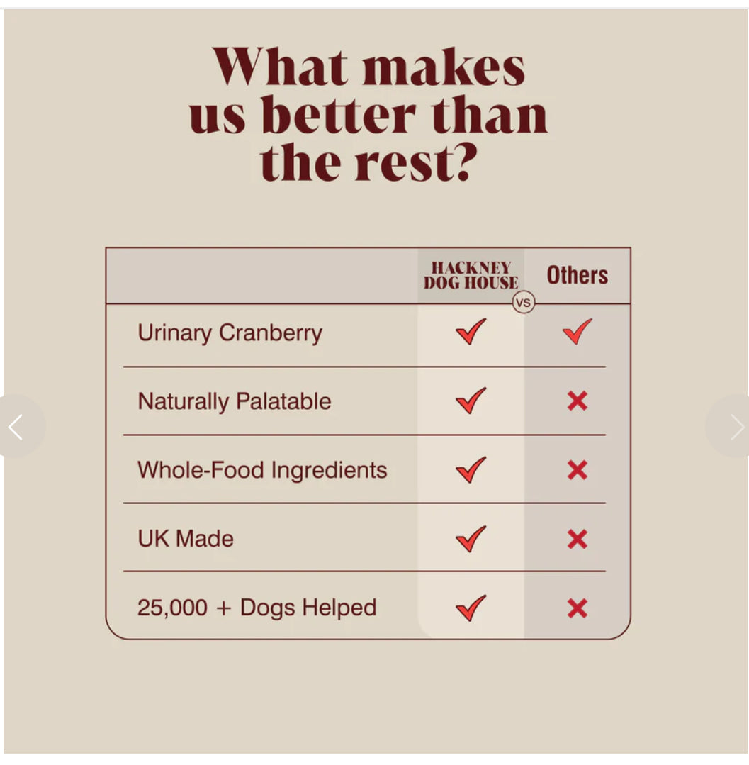 Produced with premium ingredients and made in a UK food facility. This means higher quality ingredients & safety standards, like what you'd expect from your own food.