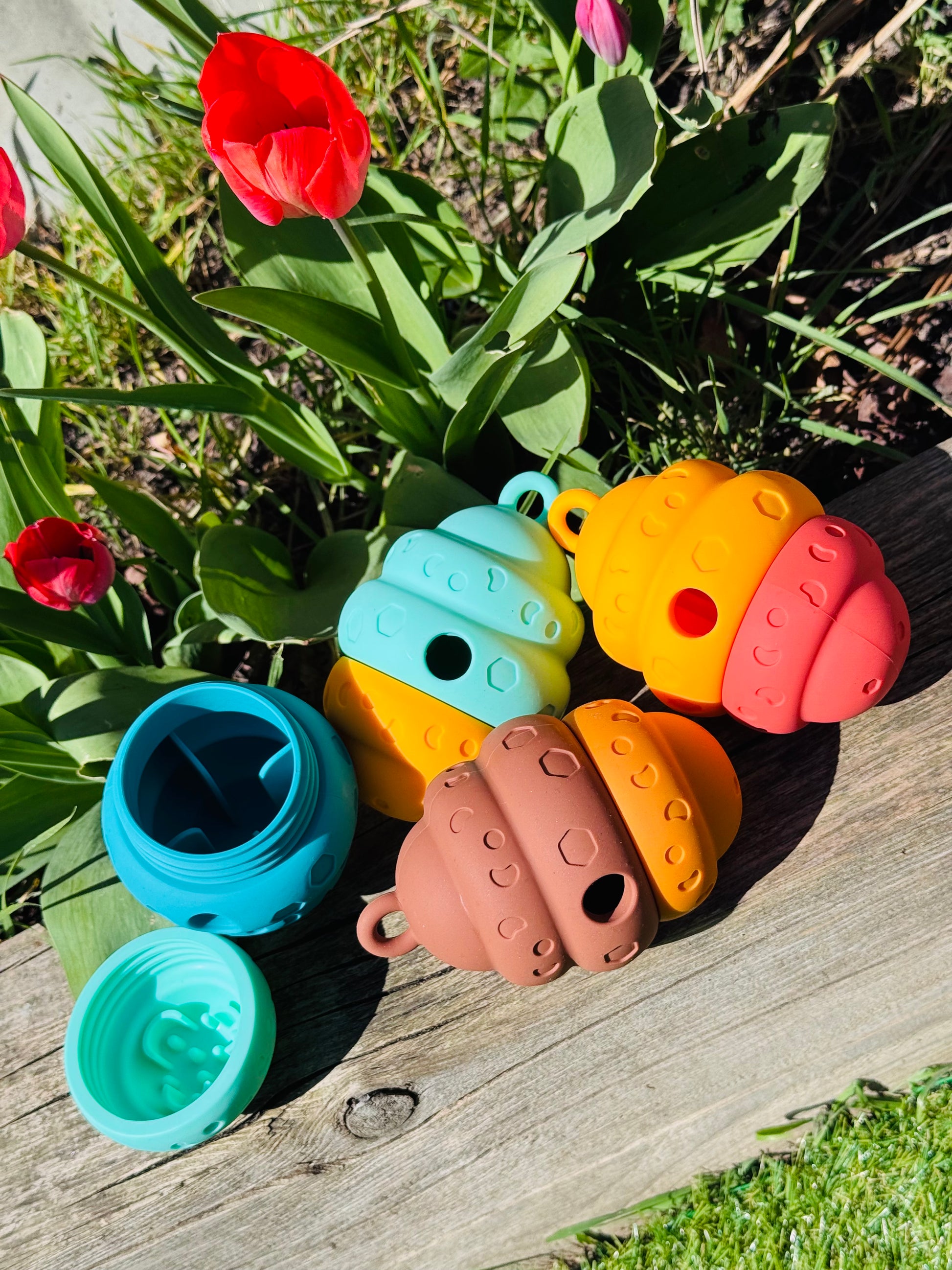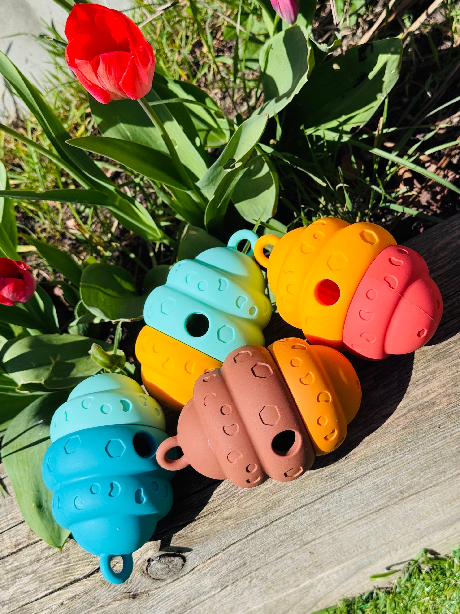 Make treat time fun and engaging with our Honeycomb Dog Treat Dispenser! Designed to stimulate your dog's natural instincts, this adorable Honeycomb-shaped dispenser adds excitement to meals and treat times, With its vibrant colours and playful design, it's a delightful addition to your pet's enrichment puzzle collection.