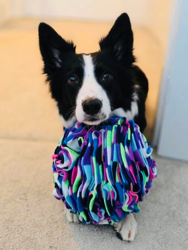 Crafted with top-quality thick anti-polar fleece, our Giant-sized Snuffle Ball is chunky and durable. It features plenty of folds, providing numerous hiding spots for treats or kibble. This makes it the ultimate dog treat puzzle. By using their nose, dogs can engage their sense of smell and problem-solving skills to retrieve the hidden treats. It's a fun and interactive way for your dog to learn new skills.