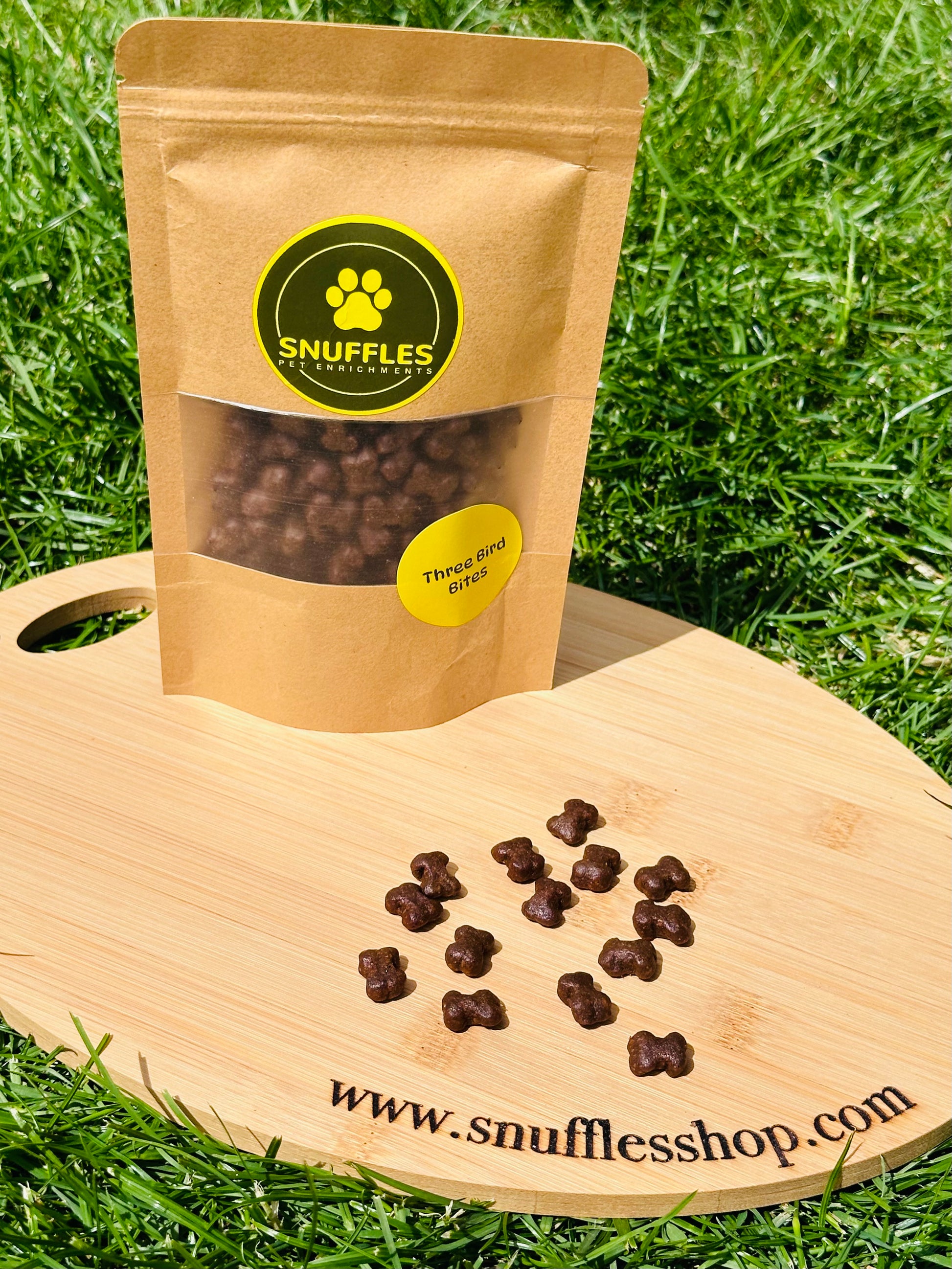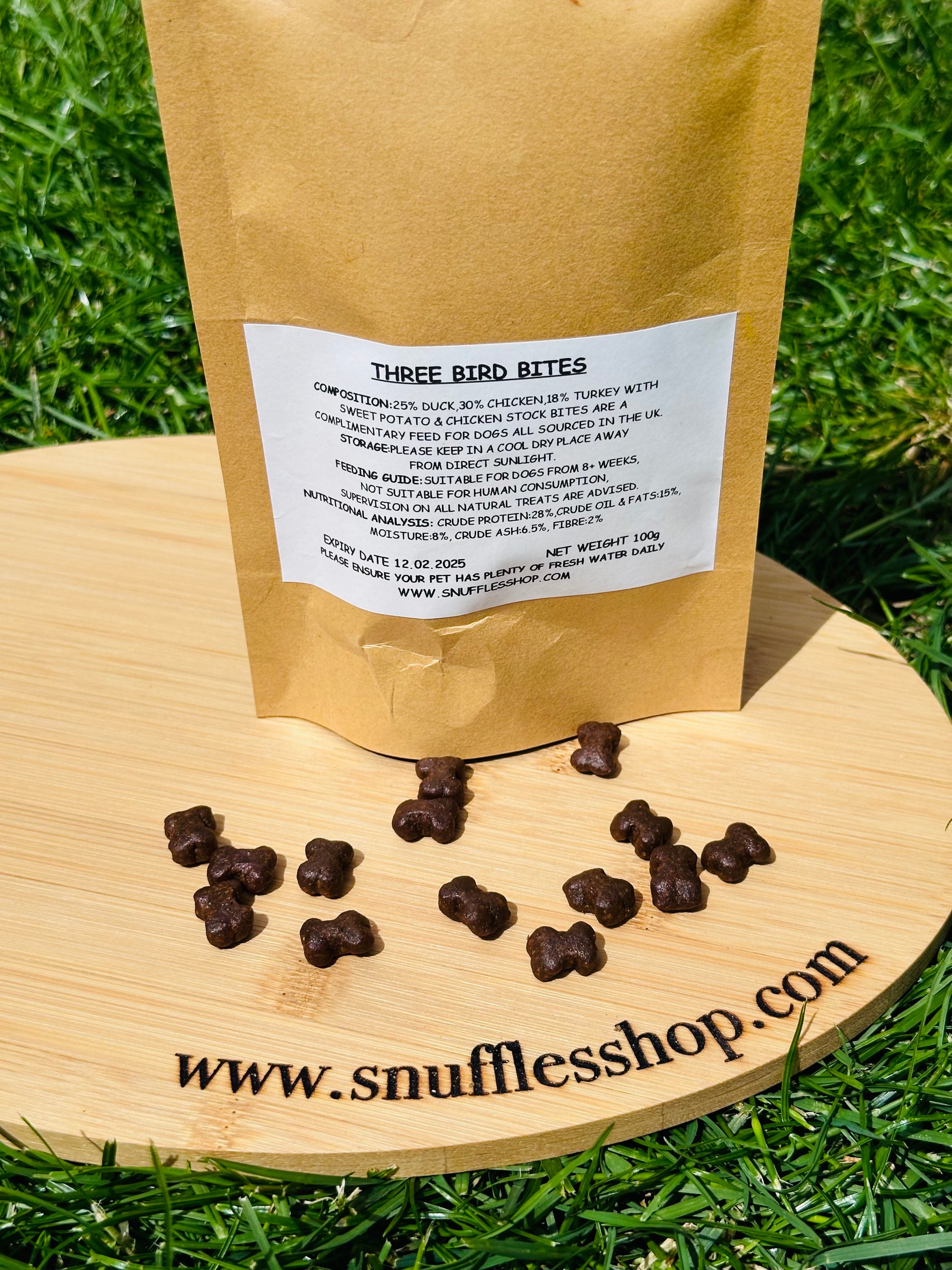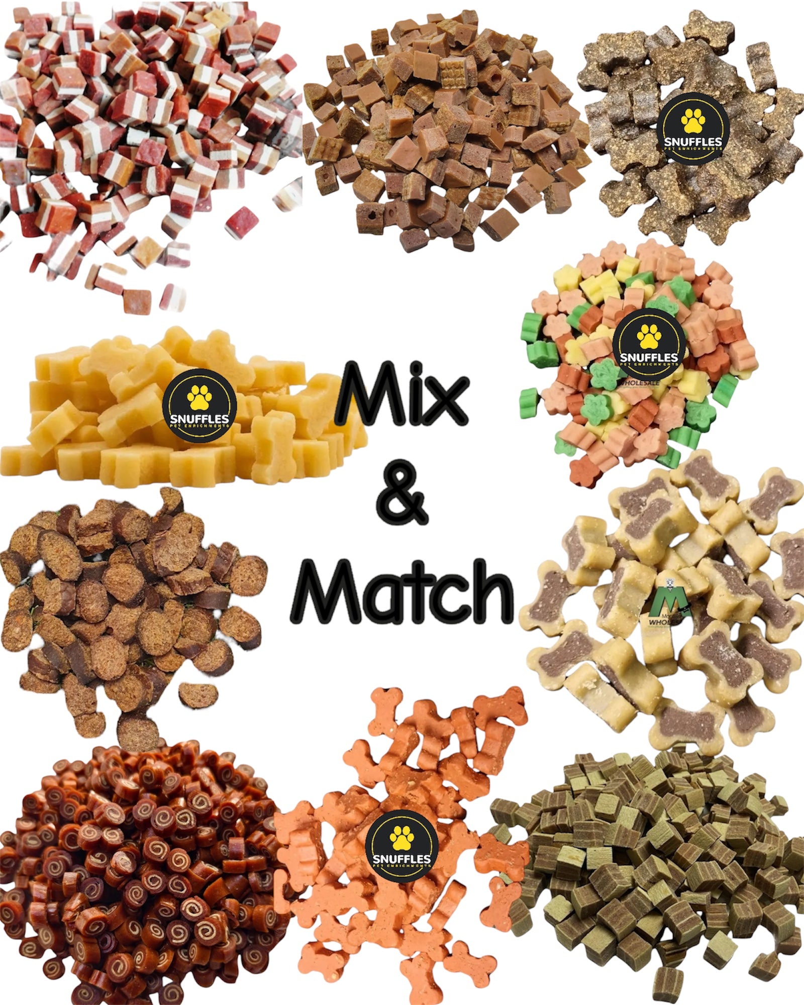 You can choose 3 or 6 100g bags of tasty treat flavours from the list below by entering them into the treat options section,