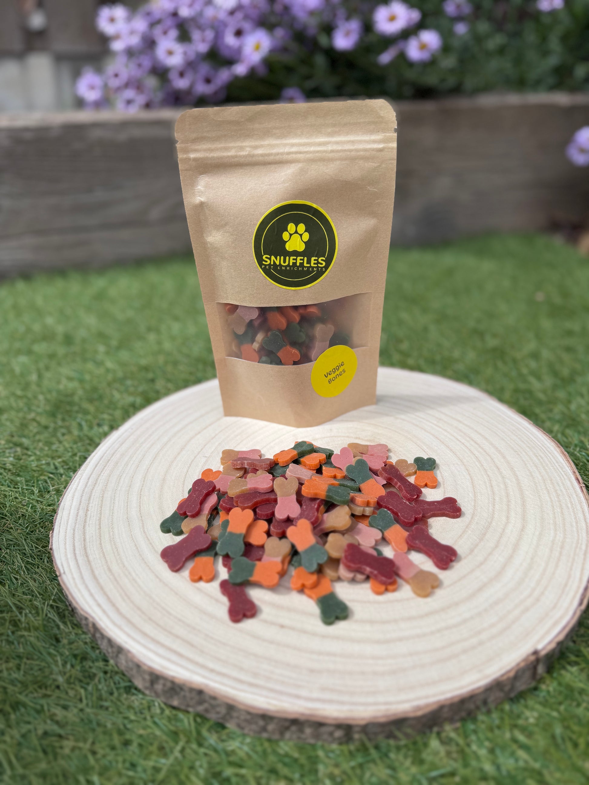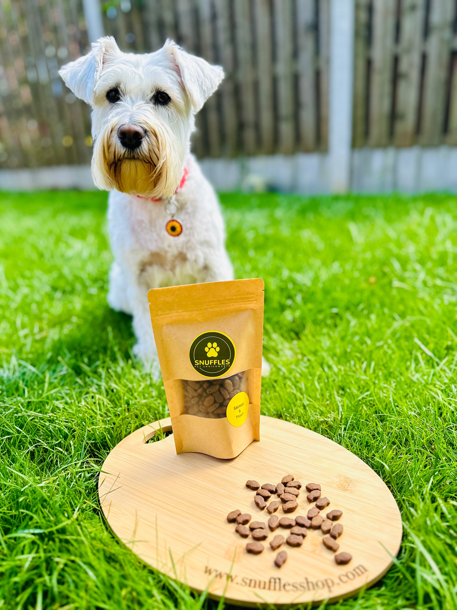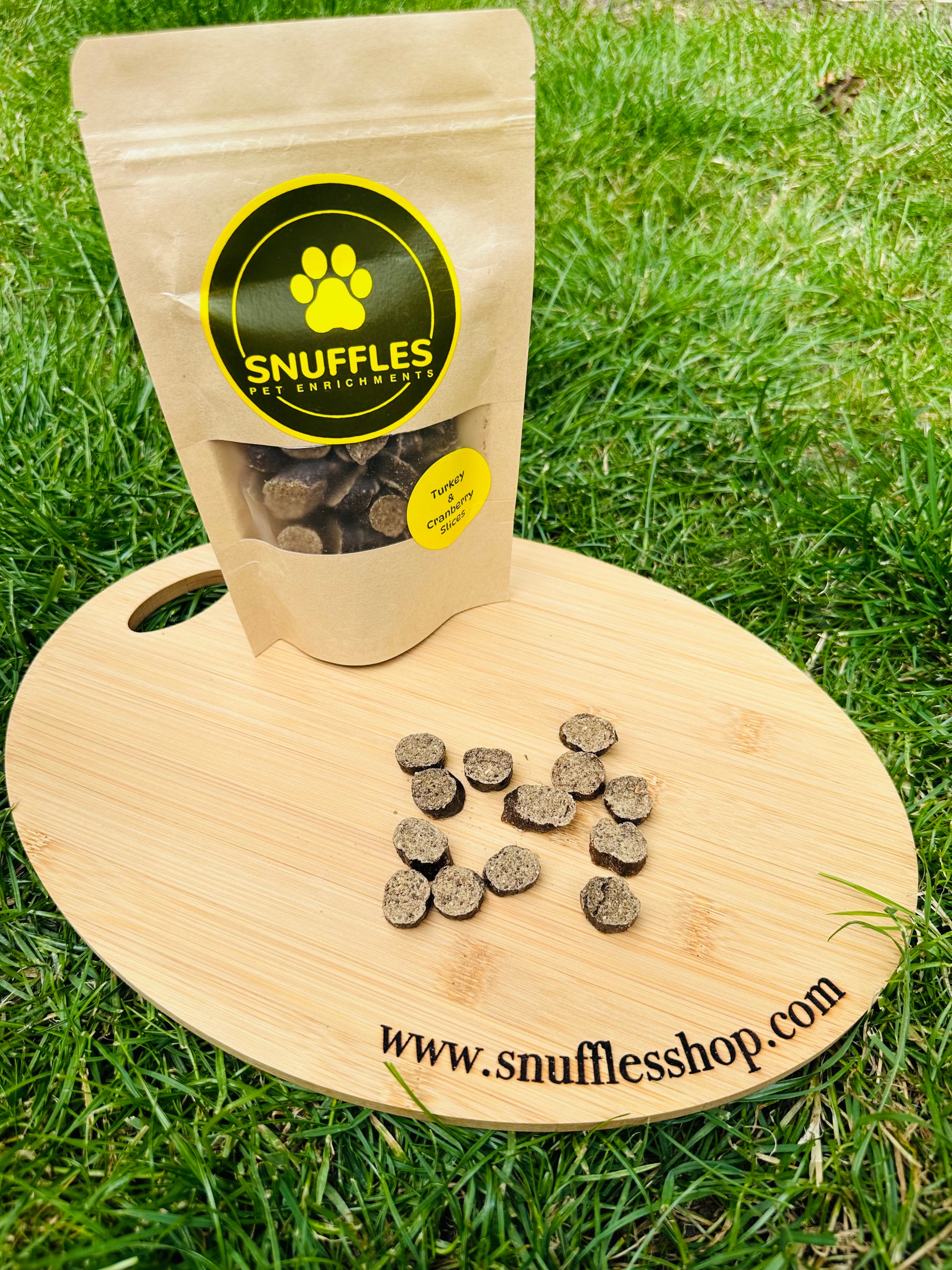 You can choose 3 or 6 100g bags of tasty treat flavours from the list below by entering them into the treat options section,