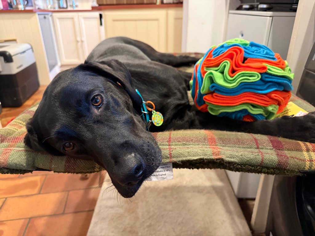 Handmade with love in Yorkshire, the snuffle ball is the pawfect dog gift for enrichment activities, slow feeding, and treat dispensing.
