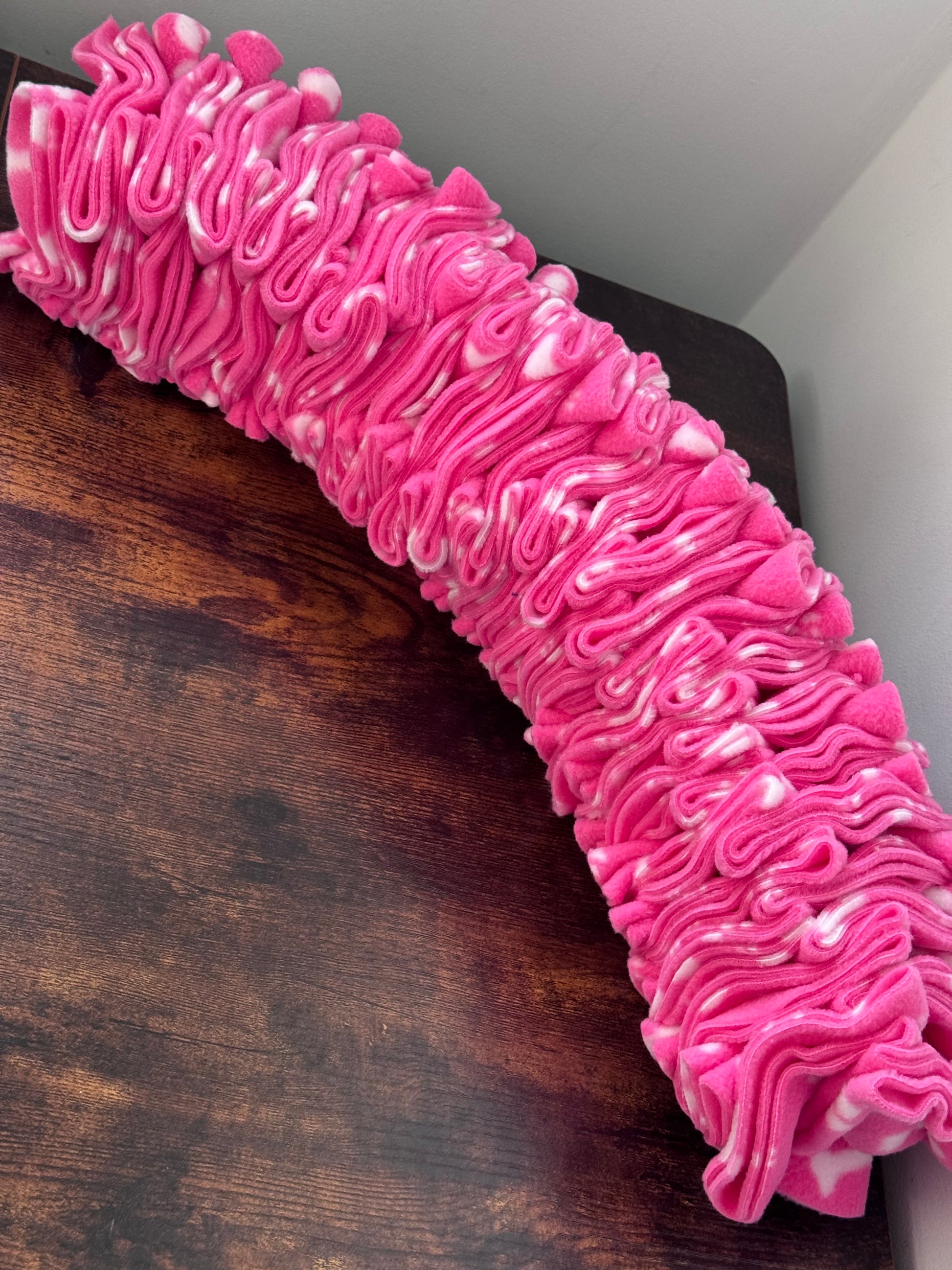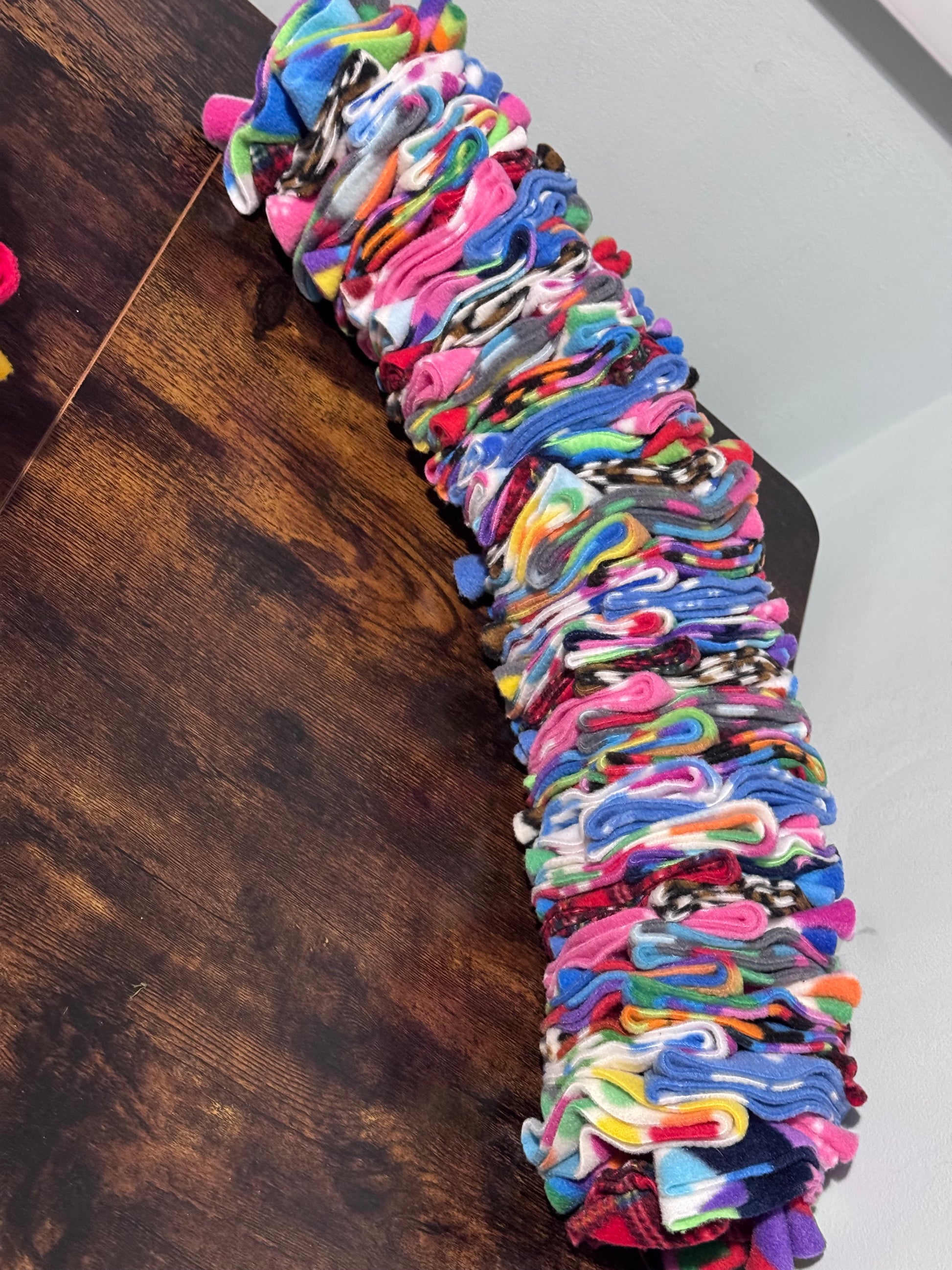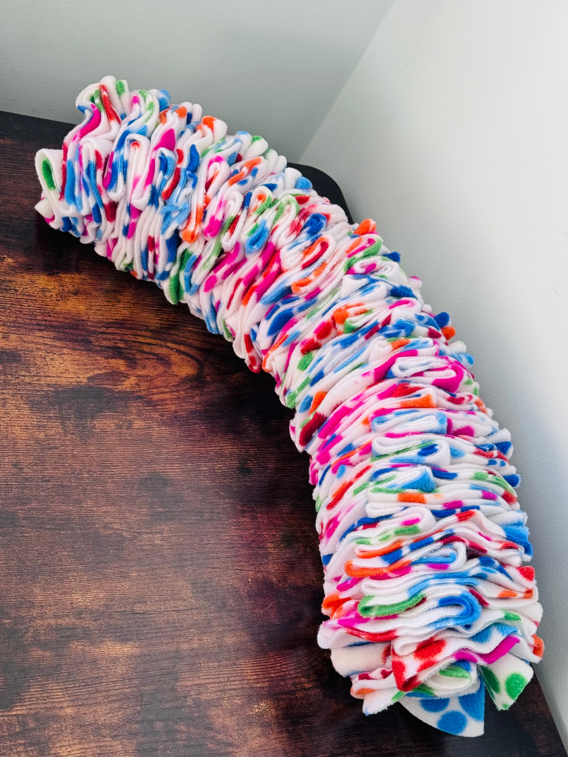 - **Material:** Made from 4” super soft, high-quality fleece circles arranged in a triangular pocket.