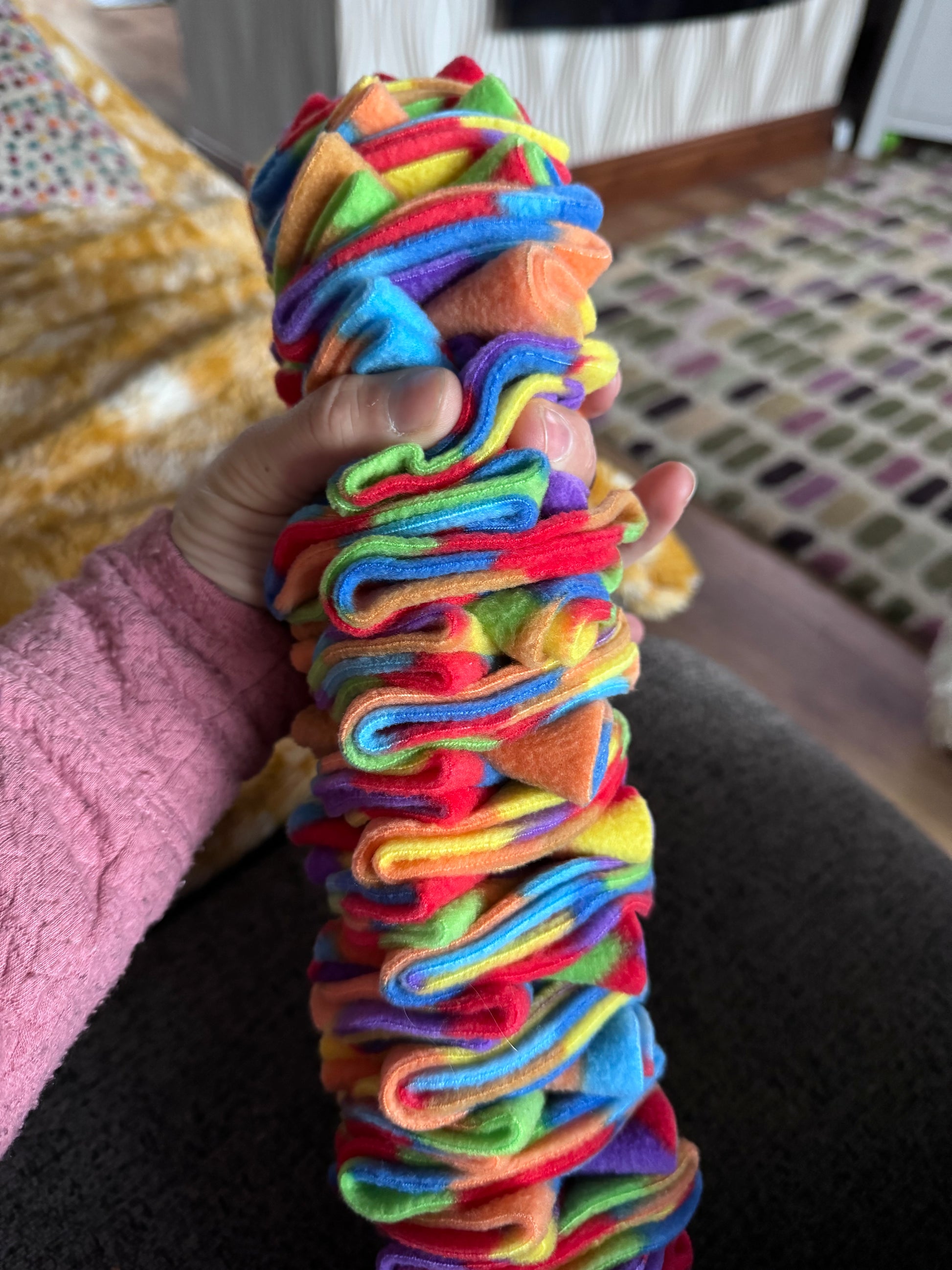 Using their keen sense of smell, pets will learn to uncover treats hidden among the soft fleece pockets. Our own furry testers love this puzzle, which keeps them focused, challenged, and happy for extended playtime.