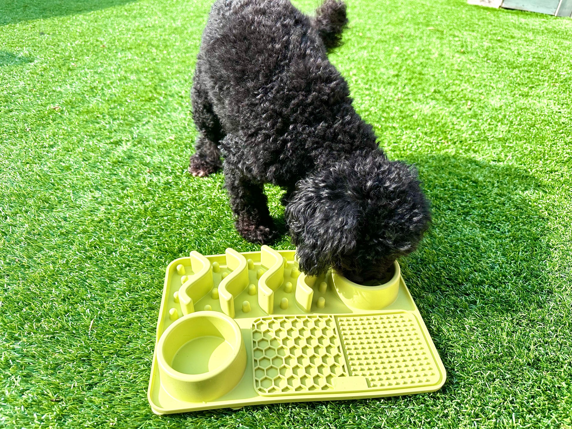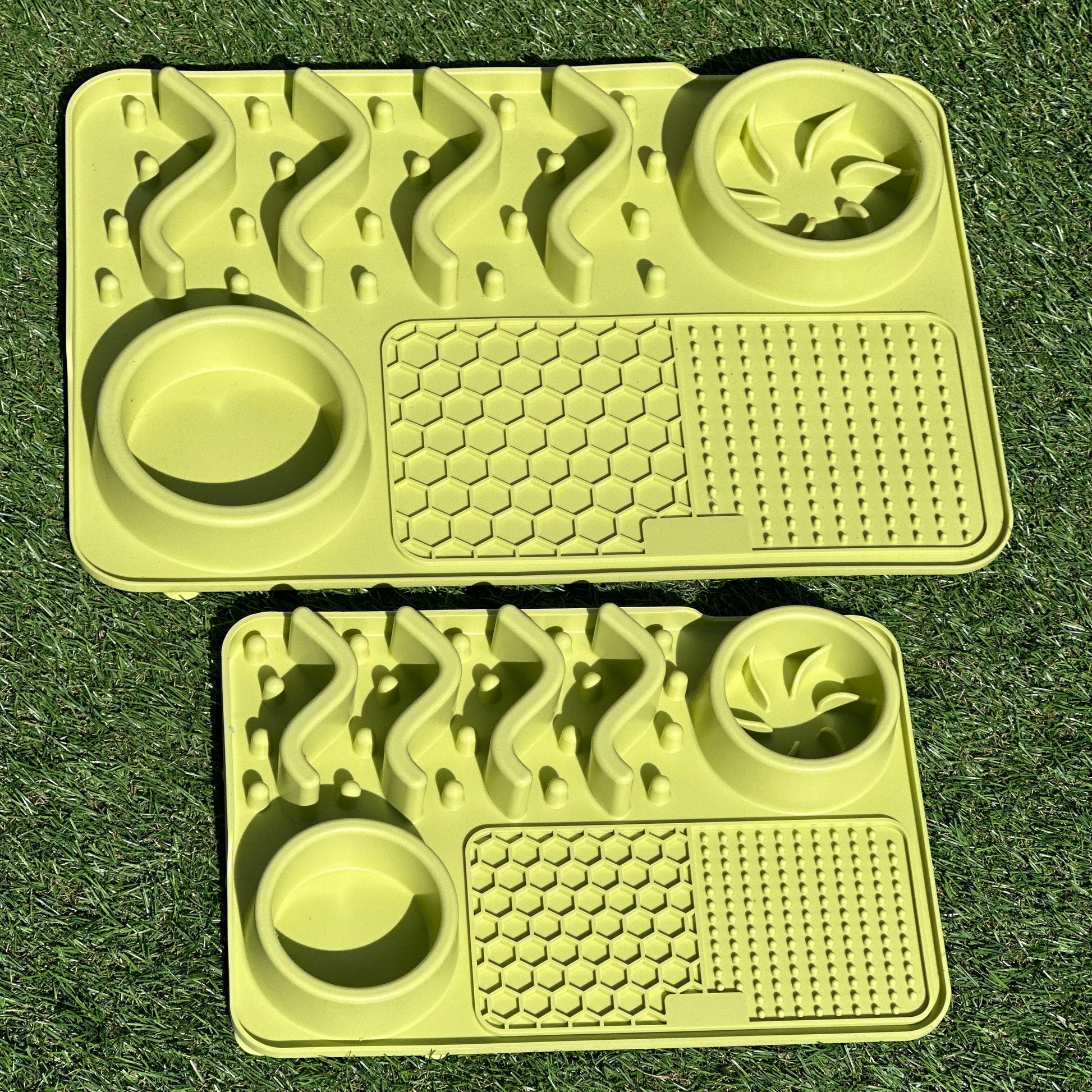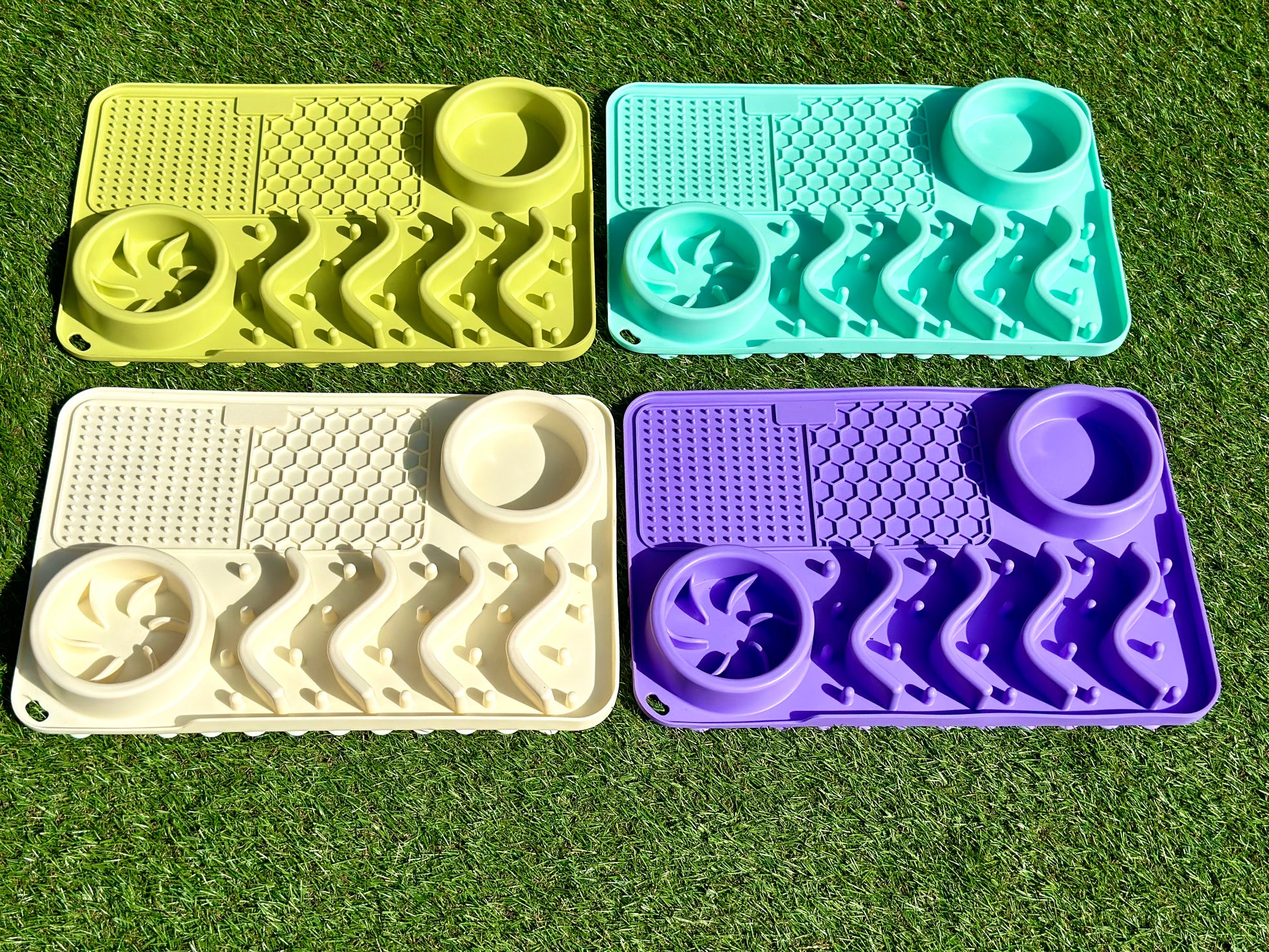 With 2 bowl sections for mealtime convenience and a puzzle section for slow feeding, our multifunctional lick mats offer endless possibilities. Additionally, the lick mat includes 2 different textured licking sections for spreading your pet's favorite treats.
