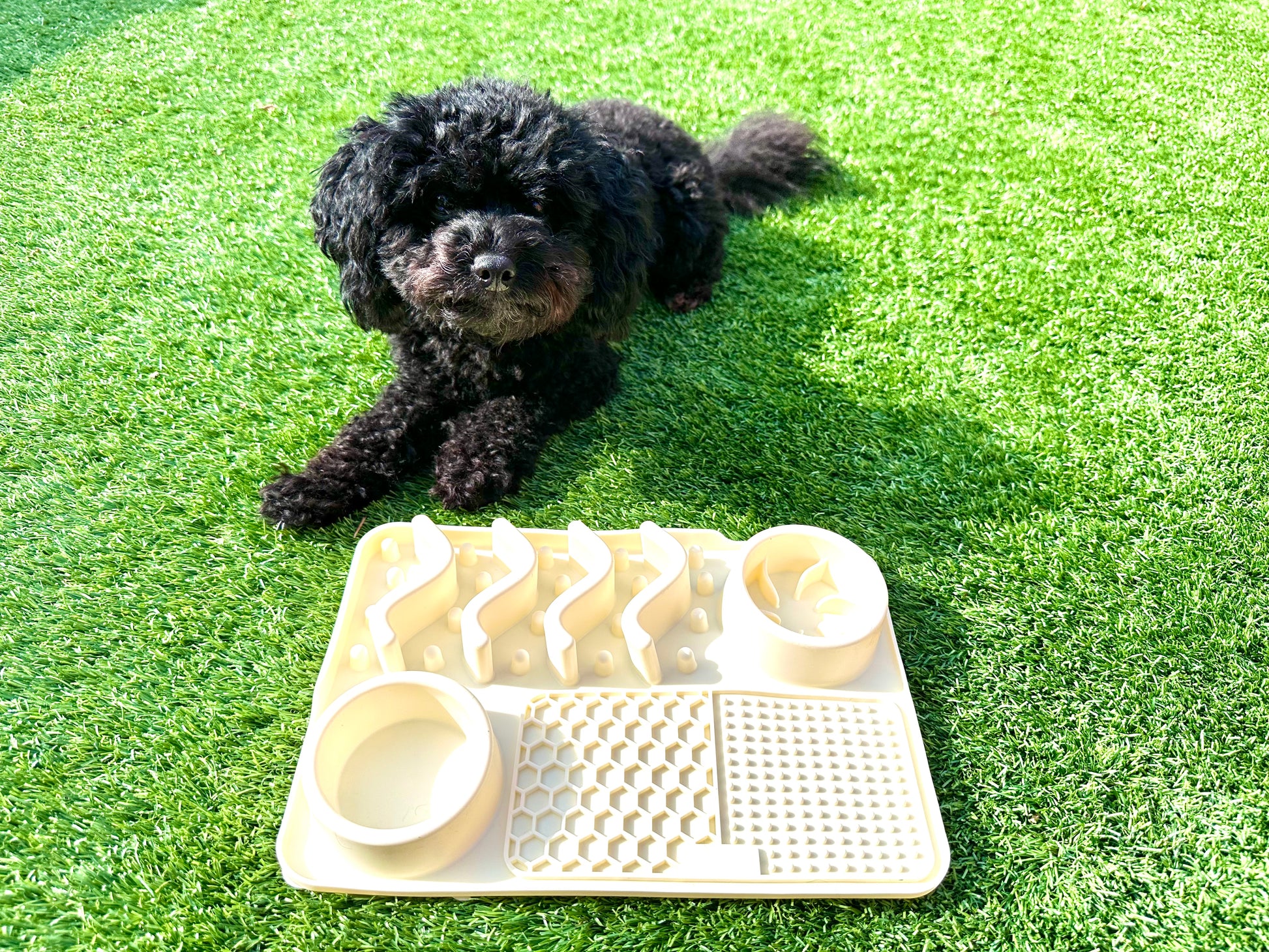 Whether your dog follows a raw, wet, or kibble diet, our lick mat serves as the ideal feeding station.