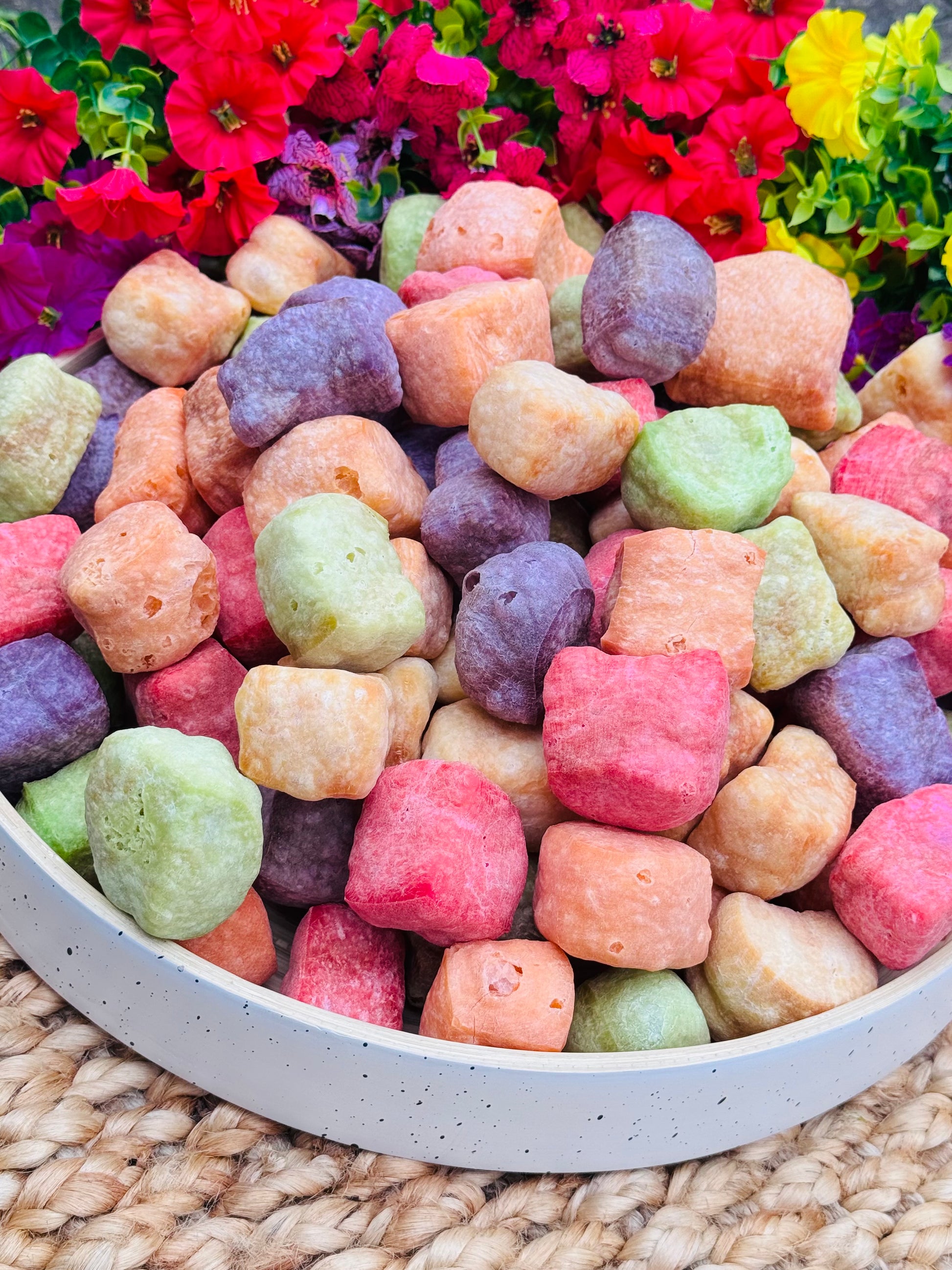 Our Himalayan Yak Puffs are a wholesome and natural treat made in Nepal using 80–85% yak milk, a touch of cow’s milk 10% , lime juice, salt, and natural fruit juices and Colourants for flavour.